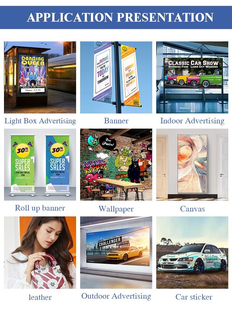| Printing Ink | Eco-solvent ink, Waterbased ink, Sublimation ink |