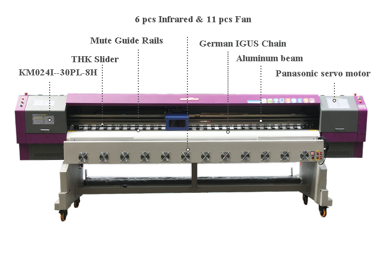 With flying printing speed, KJ-3208G is the king of performance, especially for outdoor large format advertisements. It's easy for printing, no matter how busy business.