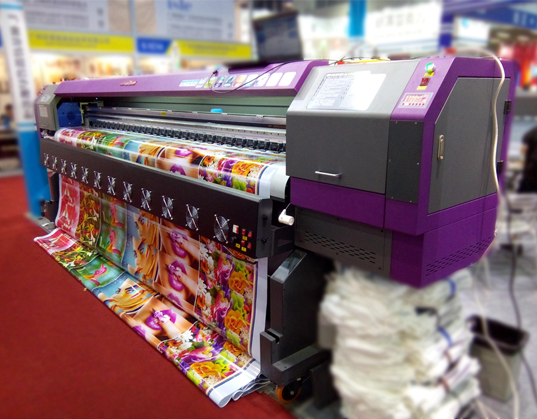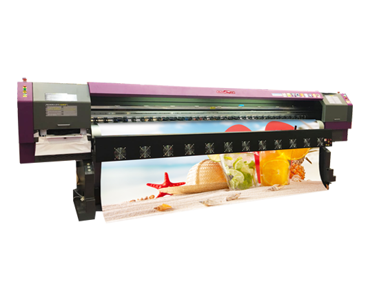 Using 4 pieces of high speed Konica 1024i solvent printhead, the KINGJET KJ-3204P solvent printer can print at speeds of up to 240 sqmh. With 8 pieces printhead, the printing speed could be 480 sqm/h.