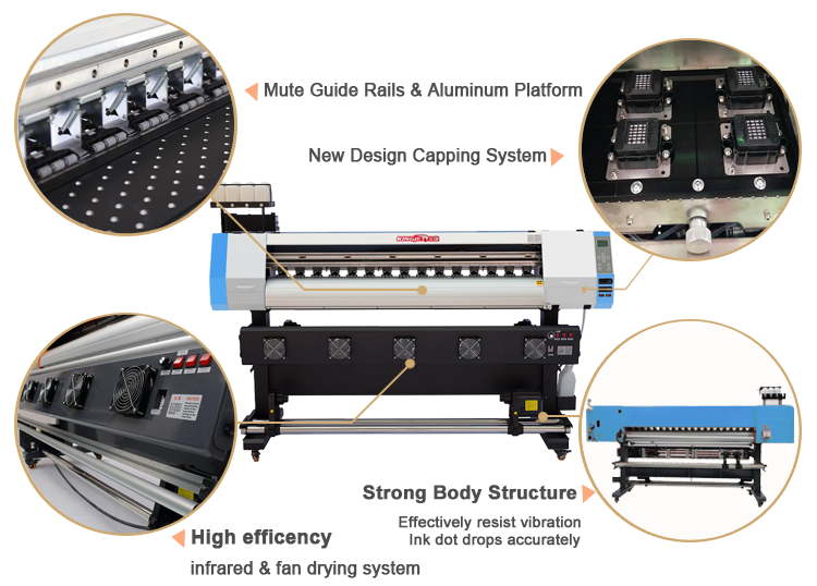 Equipped with 1 to 4 Epson XP600 print head, KINGJET KJ1802E eco solvent printer is more Cost-effective for wall sticker printing.
